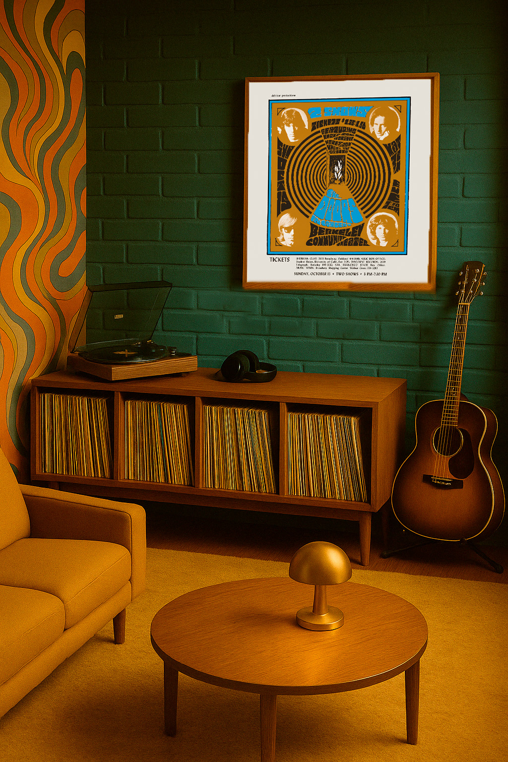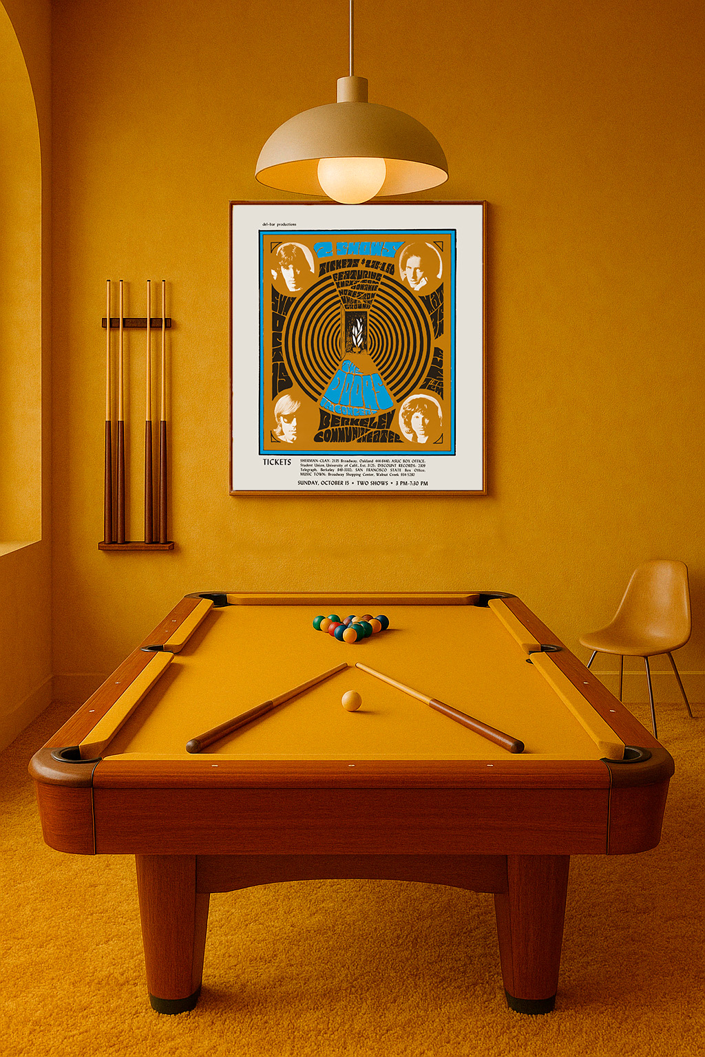 Esse pôster é um verdadeiro clássico da era psicodélica e marca um dos shows históricos do The Doors em Berkeley, no mítico Community Theater, em 15 de outubro de 1967. Com duas apresentações no mesmo dia (às 15h e 19h30), a banda incendiou o palco da Bay Area enquanto a lenda de Jim Morrison só crescia.